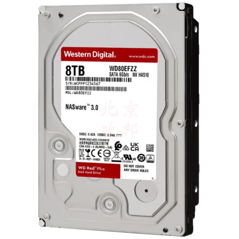 西部数据 WD80EFZZ 8TB红盘Plus WD Red Plus 5640转 128MB SATA CMR